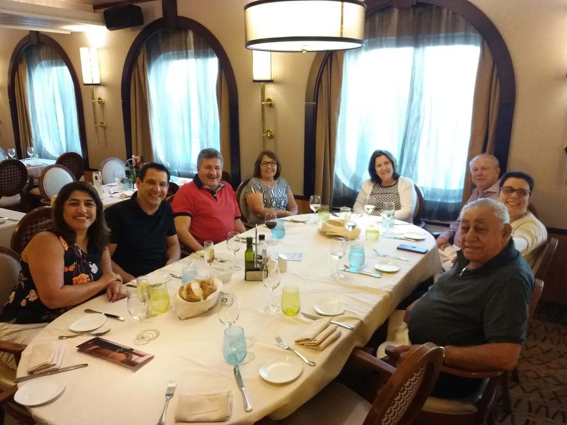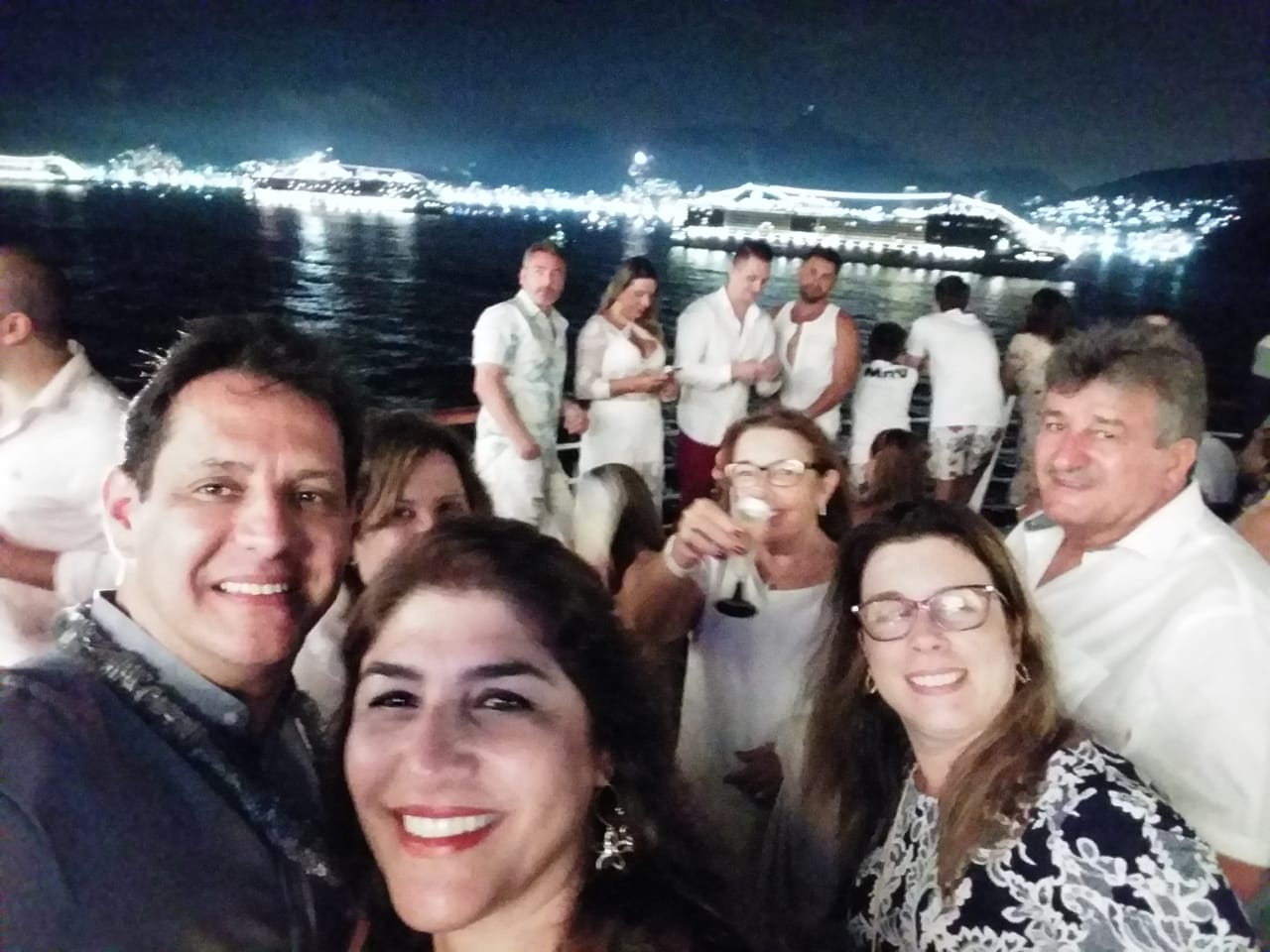 Os ex- alunos do Instituto Presbiteriano Gammon, Mara e Ronaldo Lopes hoje residentes em Brasília, reuniram com os familiares: Angélica ( filha do casal, funcionária do MP em Brasília ; Florence e Vicente, (aposentados da Câmara dos Deputados), Clayton e Letícia, (cirurgiões dentistas em Mogi das Cruzes), Magali e Jorge Miguel (Campo Belo), e à bordo do Navio Soberano da Pullmantur e CVC, esticaram a virada do ano do dia 29 de dezembro de 2018 à 05 de janeiro de 2019, pelo litoral brasileiro. Roteiro: Santos, Rio de Janeiro, Búzios e Camboriú. A virada foi próximo à praia de Copacabana, onde maravilharam com a queimada dos fogos. Momentos incríveis e passeios encantadores. Voltaram muito felizes . Mostraremos algumas fotos para vocês. Grande abraço, Mara e Ronaldo, ele nos tempos dos anos cinquenta e sessenta fazia parte da Fanfarra do Instituto Presbiteriano Gammon.