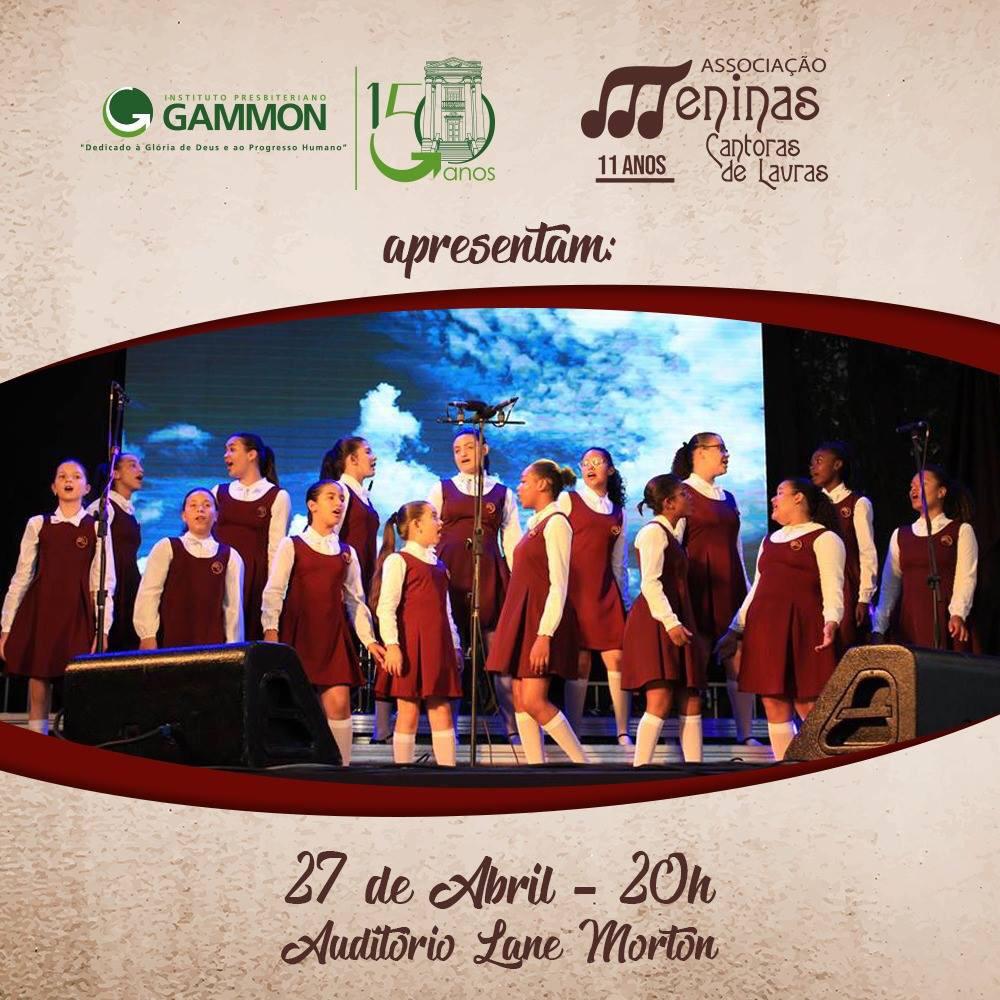 Meninas Cantoras de Lavras e Gammon por Dalva Sueli On 11 abr, 2019 0 Compartilhar Gammon 150 anos apresenta: Meninas Cantoras de Lavras. Esperamos por você no dia 27/4, às 20h, no Auditório Lane Morton. #gammon150anos 0 Compartilhar FacebookWhatsAppTwitterTumblrO email
